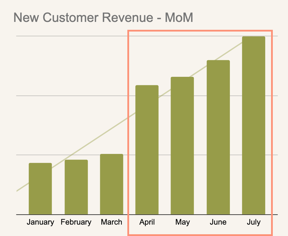 Revenue: Grew steadily month-over-month, achieving a 70% increase over the period.